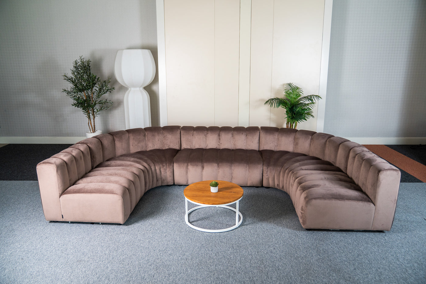 A contemporary reinterpretation of 1970s lounge style, combining bold fluted upholstery with modular comfort.