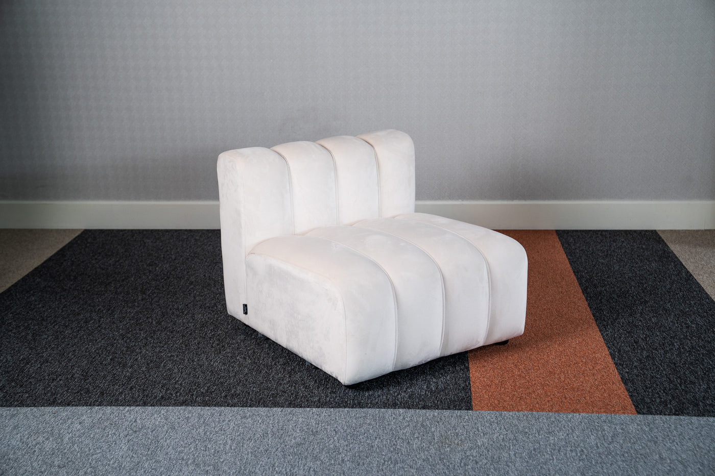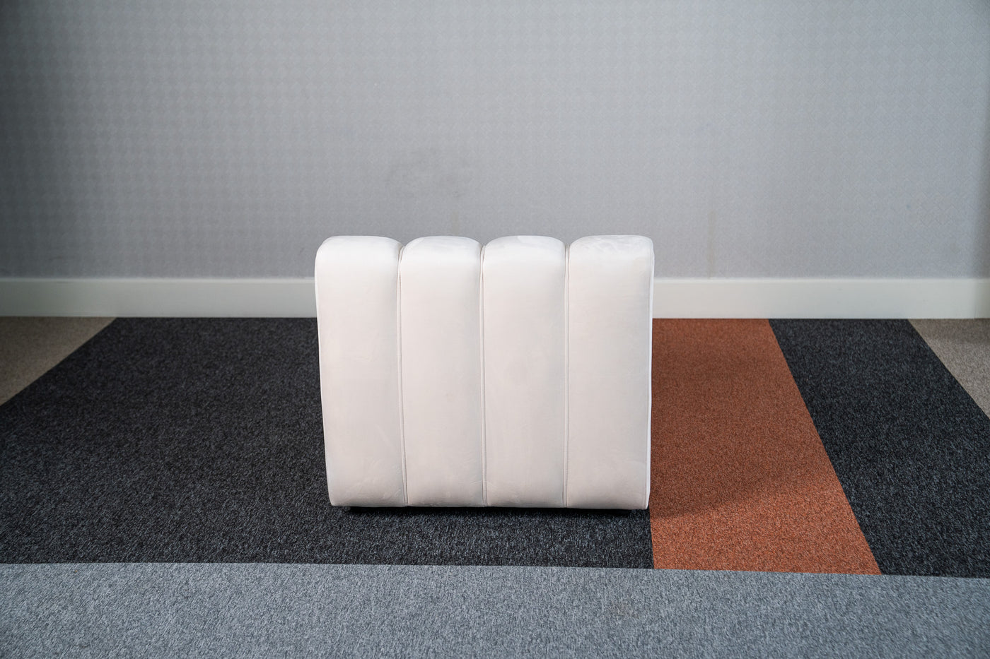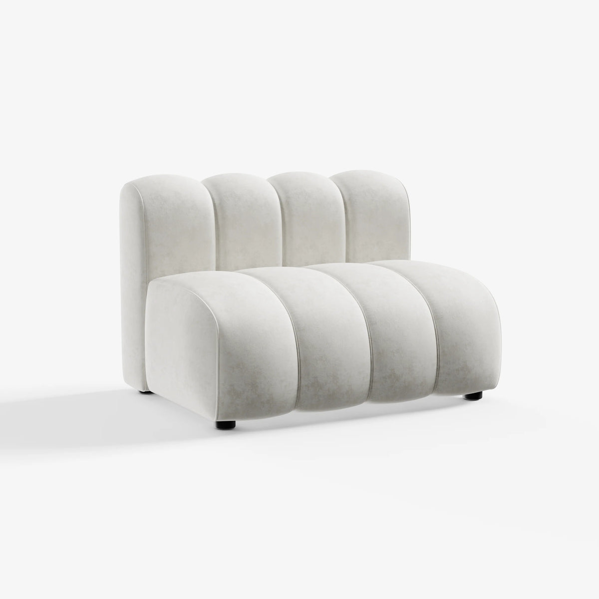A contemporary reinterpretation of 1970s lounge style, combining bold fluted upholstery with modular comfort.