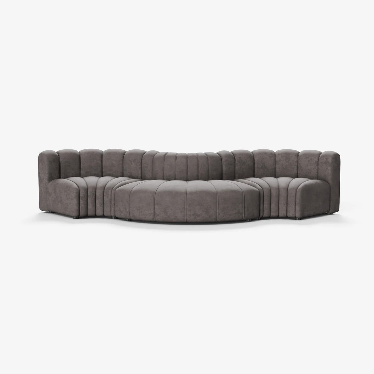 A contemporary reinterpretation of 1970s lounge style, combining bold fluted upholstery with modular comfort.