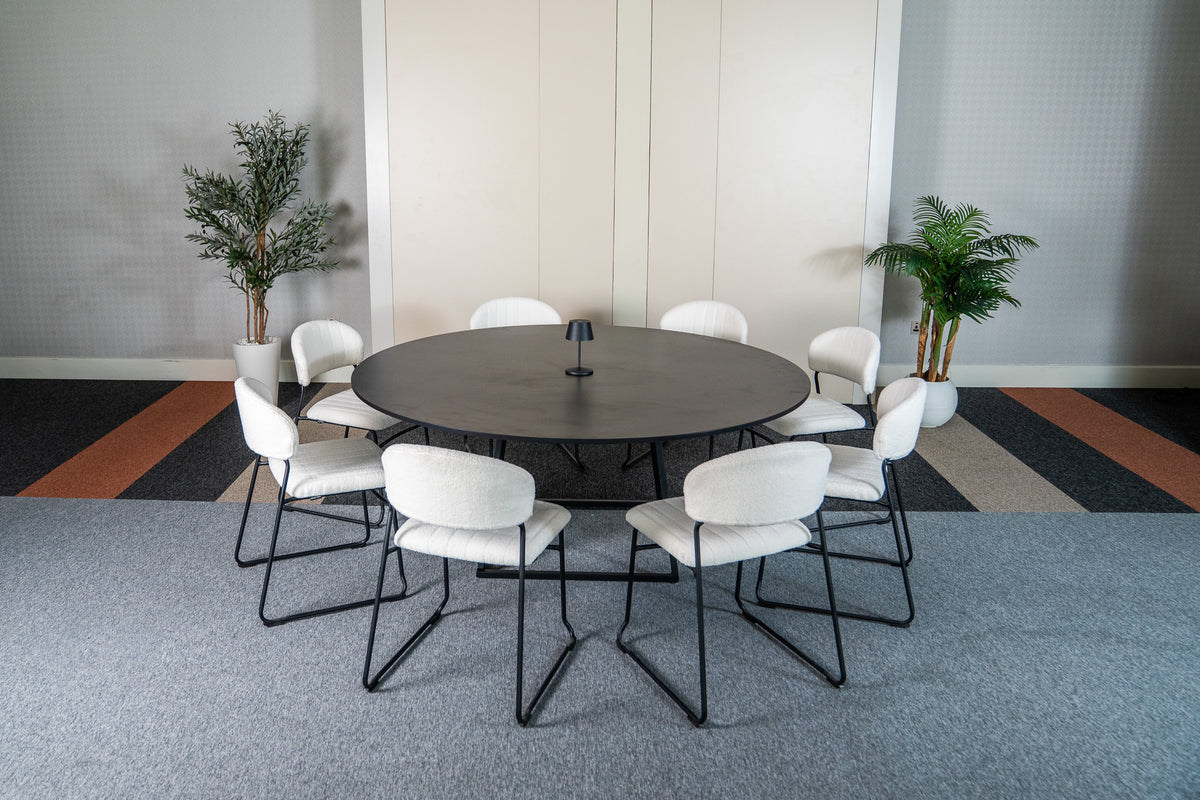 Linea XXL Dining Table (Black Frame With Round Black Top) - Black