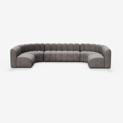 A contemporary reinterpretation of 1970s lounge style, combining bold fluted upholstery with modular comfort.
