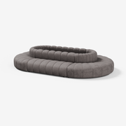 A contemporary reinterpretation of 1970s lounge style, combining bold fluted upholstery with modular comfort.