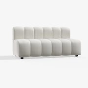 A contemporary reinterpretation of 1970s lounge style, combining bold fluted upholstery with modular comfort.