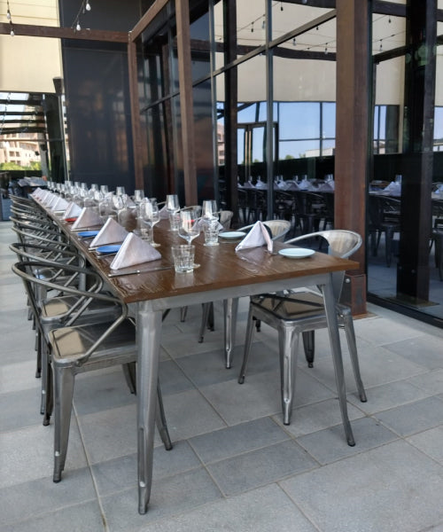 The loft collection lends itself well to both urban and rustic settings – ideal for cafes, catering events and garden weddings.
