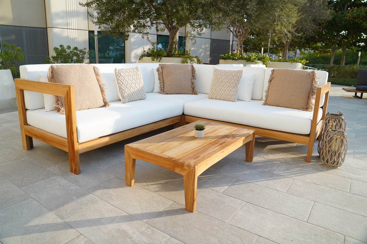 The Bonaire collection - a modular design that gives you the freedom to arrange the various components to perfectly match your preferences and needs. Handcrafted from the finest teak wood and outdoor fabric cushions, the Bonaire collection exudes easy elegance and versatility.